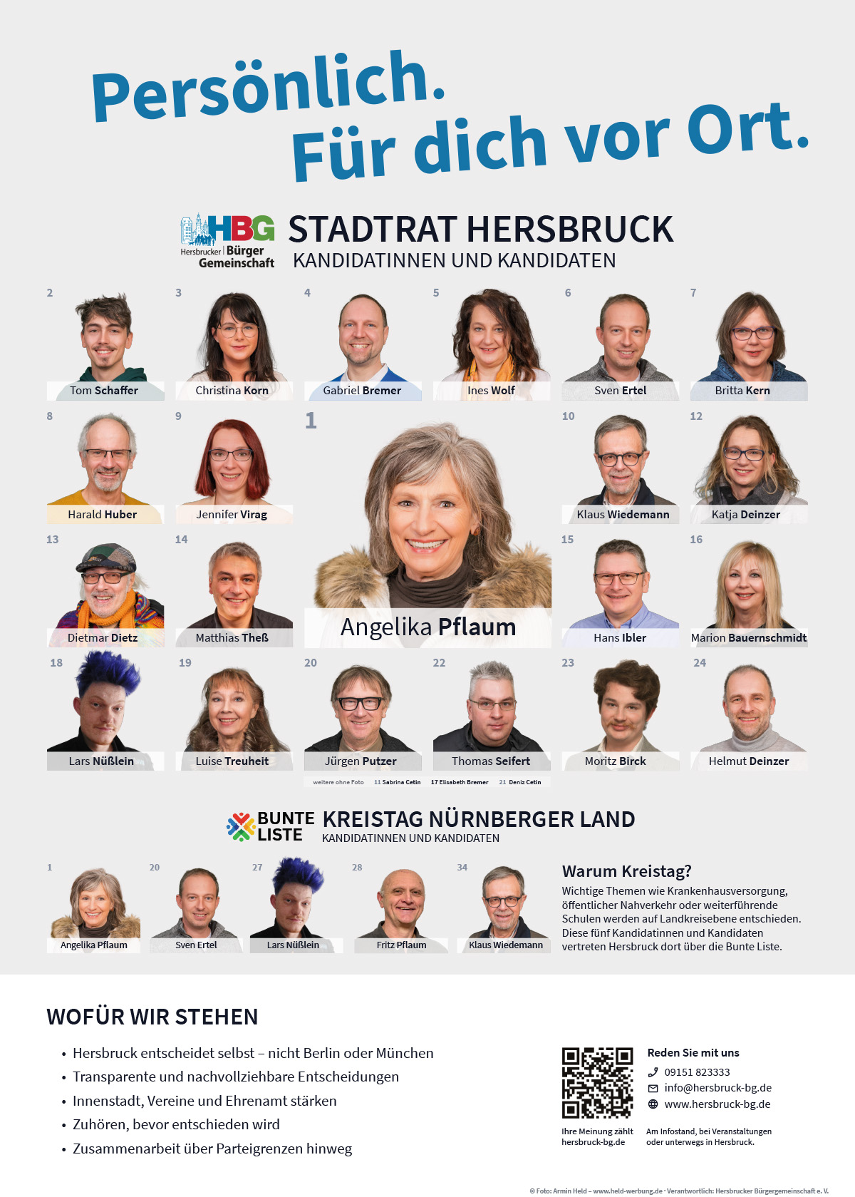 abwechslungsreiche Kommunalpolitik für Hersbruck und seine Bürgerinnen und Bürger gestalten möchte – als Verein und nicht als Partei.
